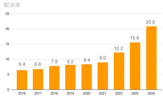 配当は控えめながらも25年連続減配なしという安定感。