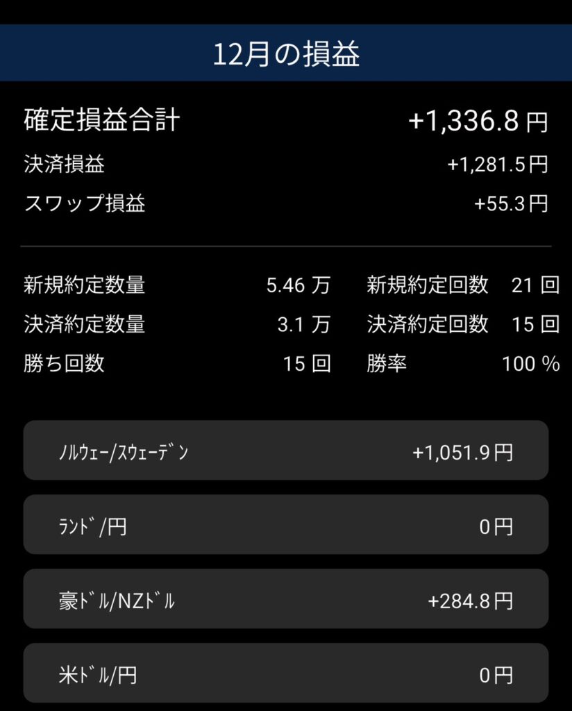 12月は +1,336.8円 と、控えめな結果ではありましたが、