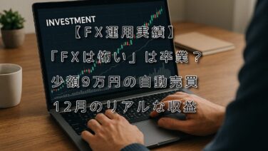 FX実績【FX運用実績】「FXは怖い」は卒業?少額9万円の自動売買、12月のリアルな収益 9万円から始めたFX自動売買の12月運用実績を公開!収益は+1,336.8円でした。下落相場で含み損が増える中、なぜ低ストレスで運用を続けられるのか?松井証券での少額運用の魅力や、実際の通貨ペア別の収支、今後の運用方針を初心者向けに優しく解説します。 2026.01.10FX実績